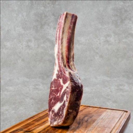 Um corte imponente de carne bovina, com osso longo da costela, muito suculento e cheio de sabor.